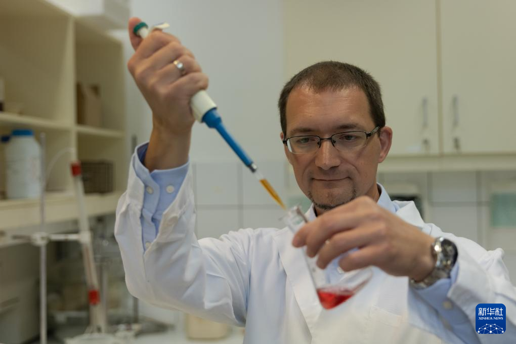 5月27日,在匈牙利布达佩斯,匈牙利农业与生命科学大学研究员佐兰·若尔特在实验室工作。 新华社发(弗尔季·奥蒂洛摄)